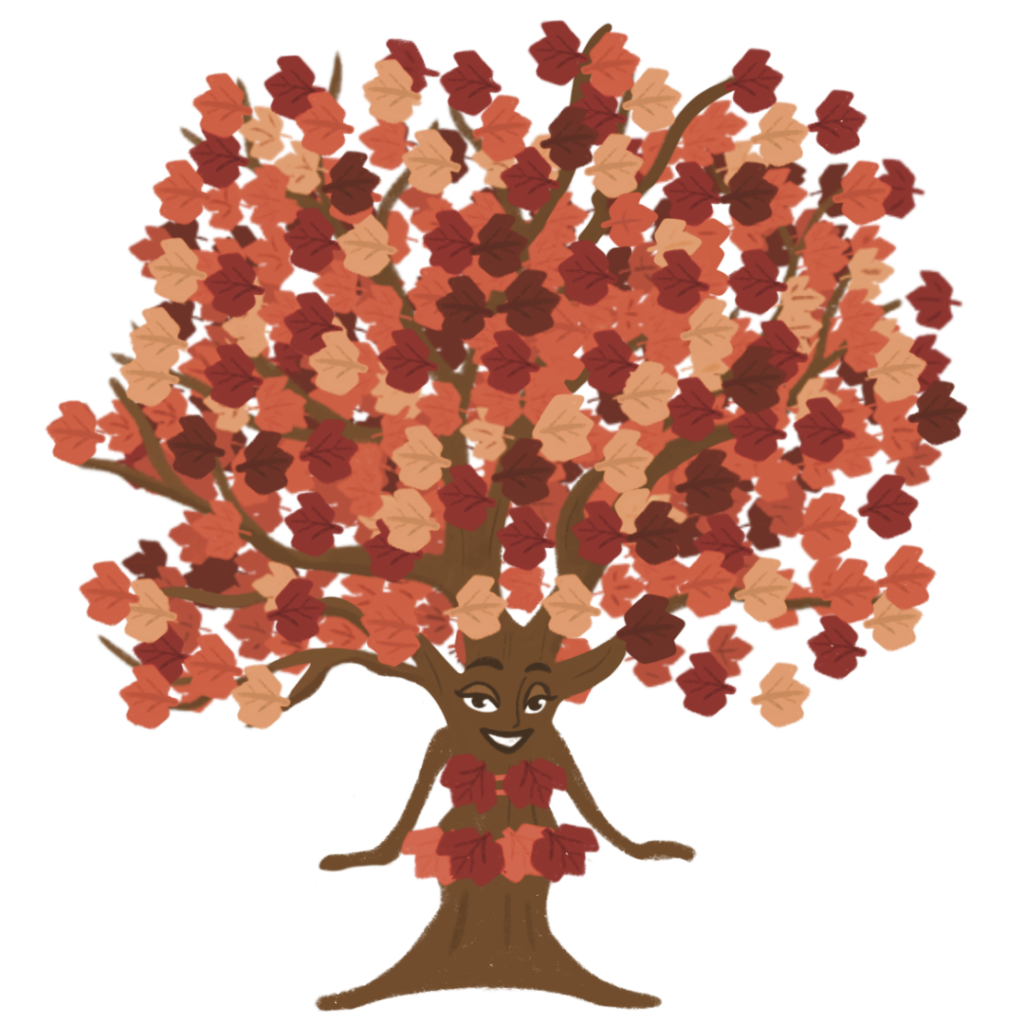 Maeve the maple tree is a stunningly beautiful, polite and kind host – she loves to create beauty and to welcome people into her environment. She has lots of friends around the park and always seems to make every situation positive!